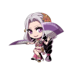 前世铭刻是“幽玄之美扇卡璐梅”。由被称为蝴蝶般飞舞的美扇转生而来。华美的舞姿下隐藏着无法想象的格斗技术。向粗鲁的家伙们无情的挥舞铁扇。